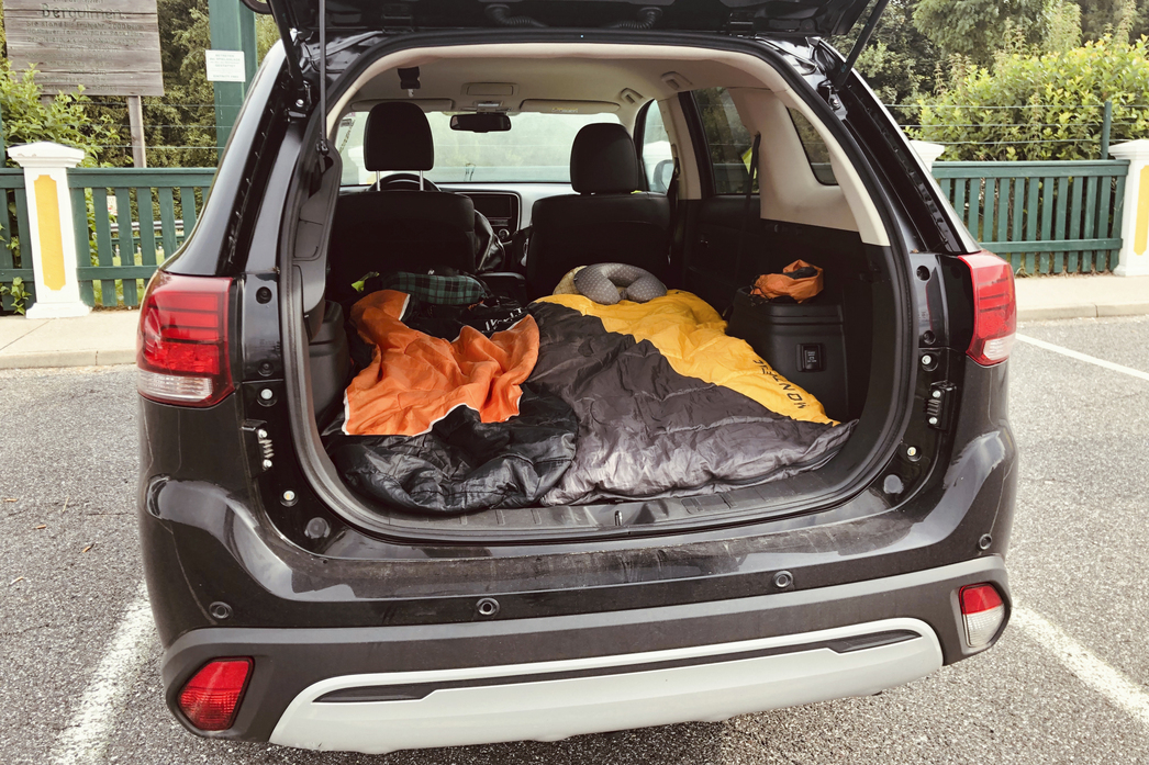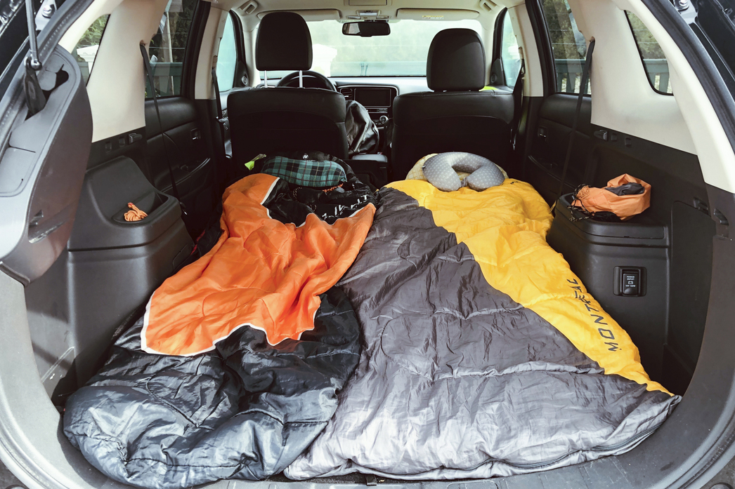 В багажнике всегда есть насос и трос, а вот спальные мешки и пару походных подушек положим: кроссовер обладает опцией ровного пола при складывании второго ряда сидений, так что в случае необходимости у нас будет шанс заночевать в машине.