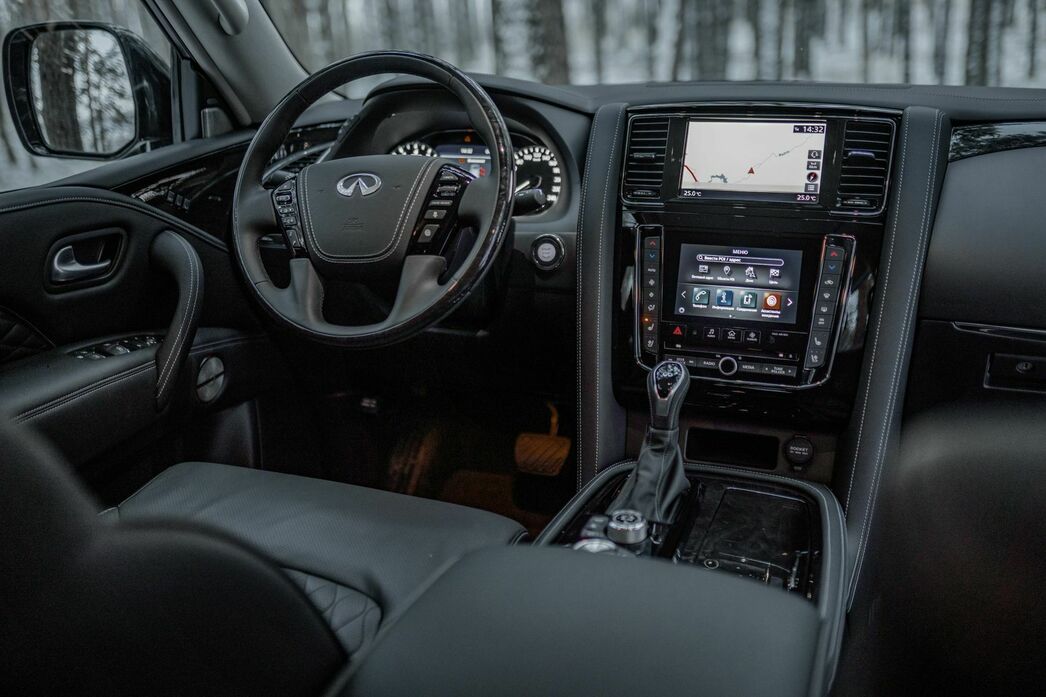 Прокатиться по рыбным местам нам помог большой и комфортабельный лайнер о четырех колесах системы Infiniti. Премиальный японский внедорожник QX80 с рамой и полным приводом вместительный настолько, что хоть в футбол играй. Для путешествия большой компанией лучшего и не придумать. На борту удобно разместятся восемь человек без какого-либо дискомфорта в коленях и локтях.