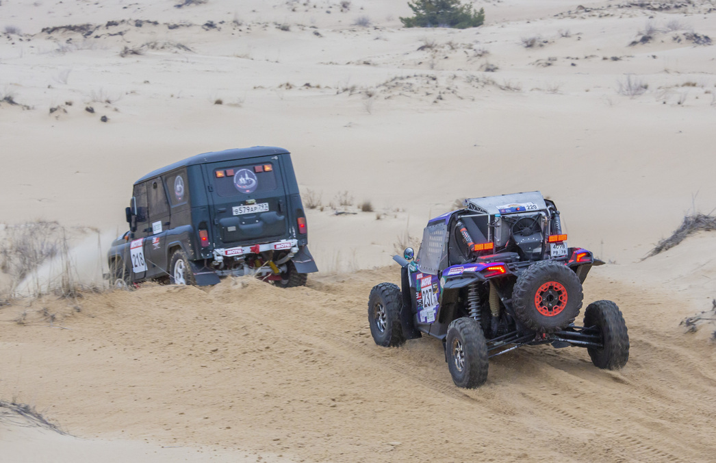 Глубина и конфигурация ям может быть оптимальной для определенных габаритов машины и размерности колес. Если большие колеса грузовика без проблем катятся по выбоинам, то более компактные автомобили вынуждены снижать скорость, крадучась преодолевая препятствия. Сразу же падает средняя скорость, что отражается на результатах соревнования. Разумеется, никто специально ямы не копает, но найти подходящие на маршруте не так уж сложно. На ралли «Тихий Дон» ситуация получилась обратная. Тяжко пришлось габаритным машинам. Лучшее время второго дня показал Андрей Жигунов на MINI (категория Т1), за ним следует несколько CAN-AM MAVERICK X3.