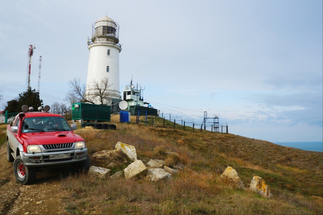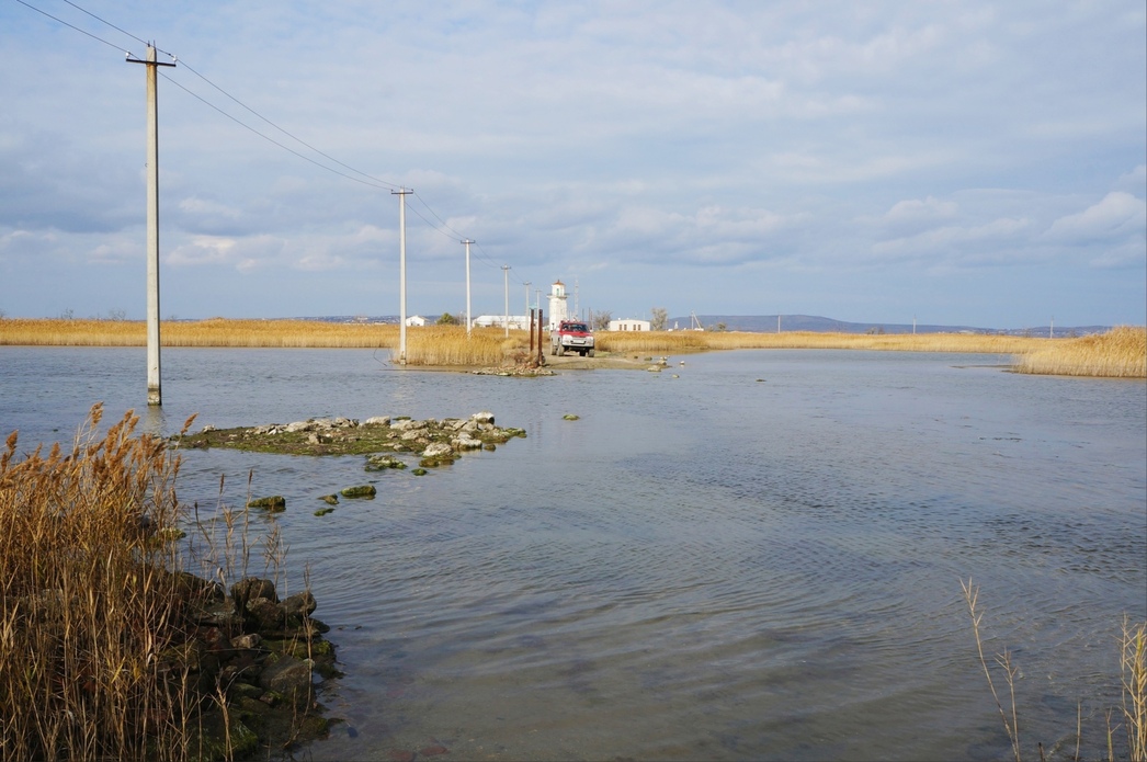 Другое дело — коса Чушка, неподалеку от Порта-Кавказ. Проехать туда можно даже на пузотерке, насладившись красотами этих мест. Здесь сразу два довольно красивых маяка, один из которых работает. Дорога ко второму идет через брод, не слишком глубокий, но соленый — купать машину в морской воде не решился, дошел пешком. Отсюда открывается отличный вид на Керченский пролив и берег Крыма, и маяки, дорога до которых отняла пару часов. Начиная с Керчи и вдоль всего Южного берега Крыма довольно много красивых построек, дорога до которых может быть как очень простой, так и совсем сложной, но проходимой.