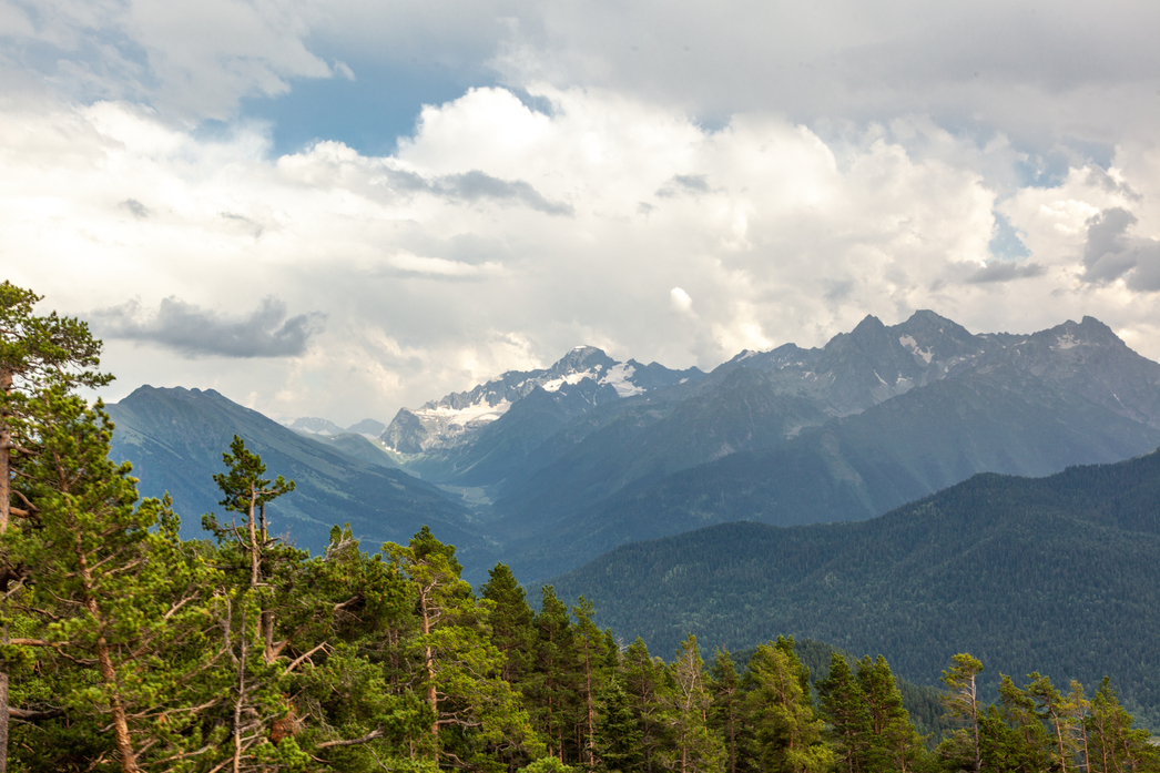 Если хотите в августе застать июнь, то стоит заглянуть в Архыз — погода здесь нестабильна. Днем может и пригревать, и дождить. А вечером температура падает на пару десятков градусов ниже — приходится даже утеплятся. Зато в лесу полно земляники, луга покрыты густой зеленью, а горные пейзажи скрашивают ледники.