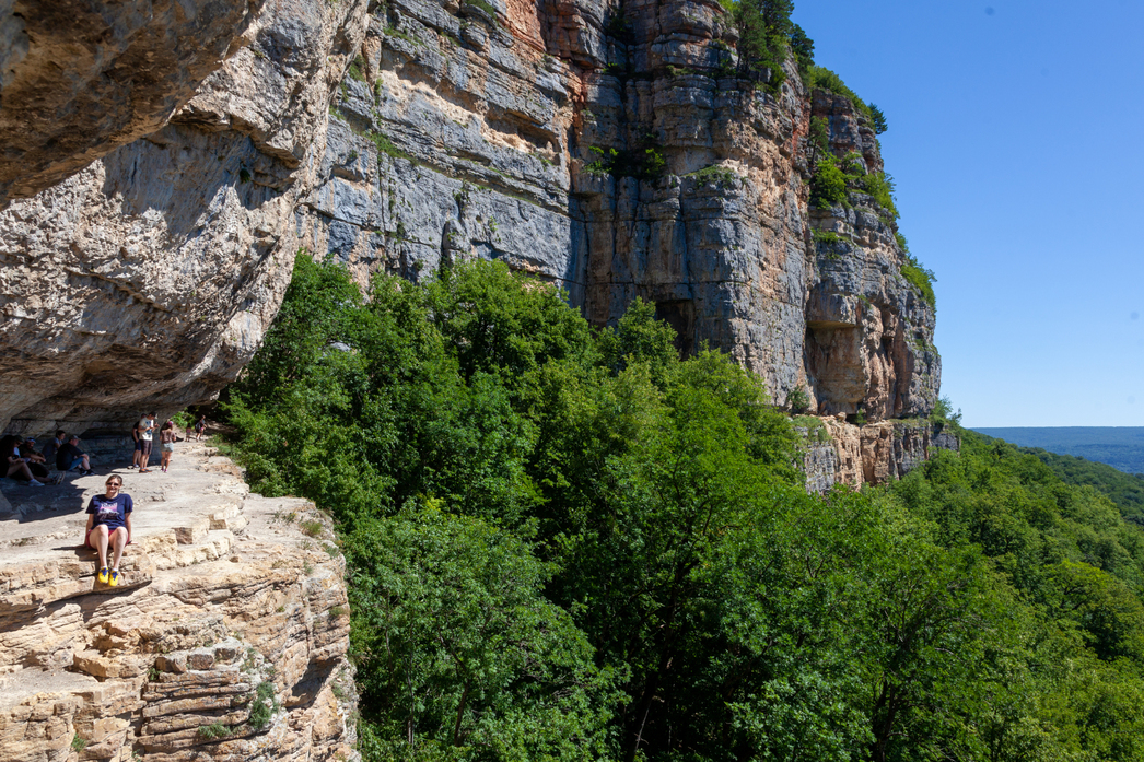 С Орлиной полки открываются потрясающие виды на долину, в которой расположен хутор Гуамка. Отсюда видно и его, и Гуамское ущелье, и еще много чего. Ну и посоревноваться в эффектности фотографий тут тоже есть где. Главное, не перебарщивать с бахвальством и смелостью.