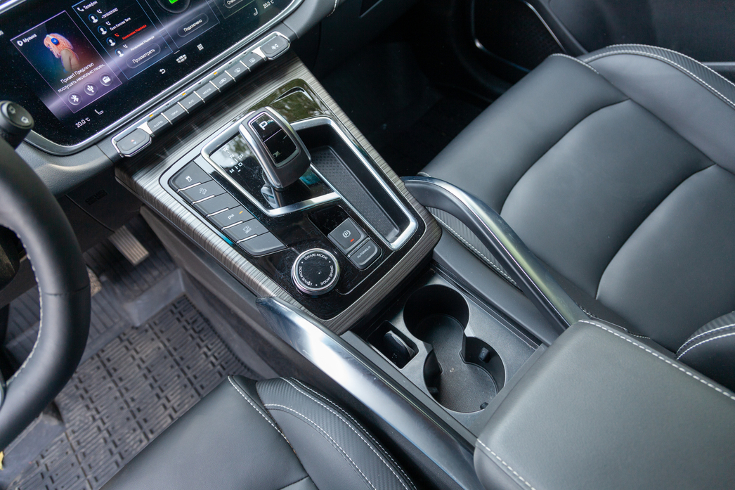 А что же Geely Atlas Pro? Всего три цилиндра, пусть и надутых турбиной, мягкий гибрид, позволяющий медленно ехать на электротяге и подбодряющий моторчик с низов, когда это необходимо — кажется, ждать веселья от него неоткуда. Но нет, двигатель весьма живенько реагирует на нажатие педали газа, и охотно стартует с места или ускоряется, когда ситуация требует быстрого обгона.