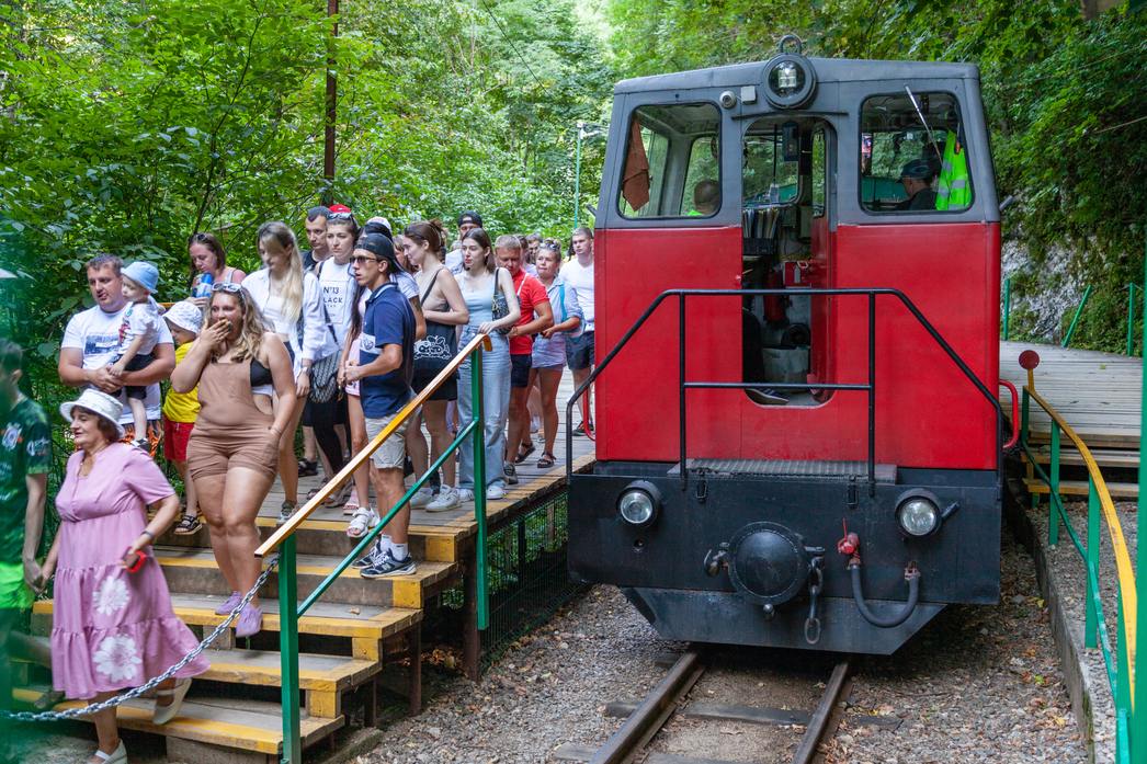 Почему именно так? Дело в том, что хутор является воротами в живописное ущелье, по которому до сих пор ходит по узкоколейке поезд. Да, недалеко, всего пару километров вверх по ущелью вдоль реки. Но детям такой аттракцион очень заходит. Да и нам понравилось.