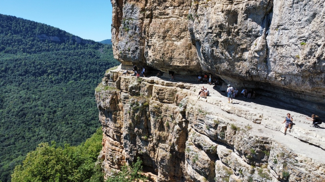 Где-то на полпути между Гуамкой и Мезмаем расположилась одна из красивейших туристических точек, которые обязательно стоит посетить — «Орлиная полка». Место настолько красивое, насколько и опасное. Эпизодически здесь гибнут люди. Но не природа в этом виновата, и не звери, которые тут тоже встречаются, а пренебрежение техникой безопасности и желание сделать селфи поэффектней.