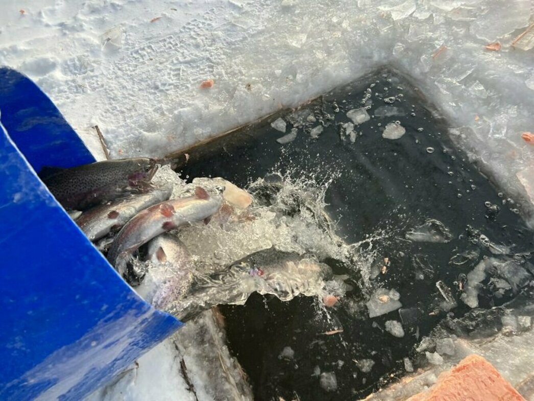 Относительно недалеко от Красногорска — на пруду в Светлых Горах — тоже берут по 3500 рублей с рыбака. Там под форелевую ловлю отгорожена небольшая часть местного пруда. Запуски — по 3 кг на клиента. За эти деньги можно выловить до 10 кг рыбы. Поймаешь больше — будешь оплачивать «перелов» по 800 рублей за каждый сверхнормативный килограмм. На моей памяти такого не случалось зимой ни разу: слишком уж «сиротские» запуски рыбы. Хотя сам по себе прудик симпатичный. Камерный такой.