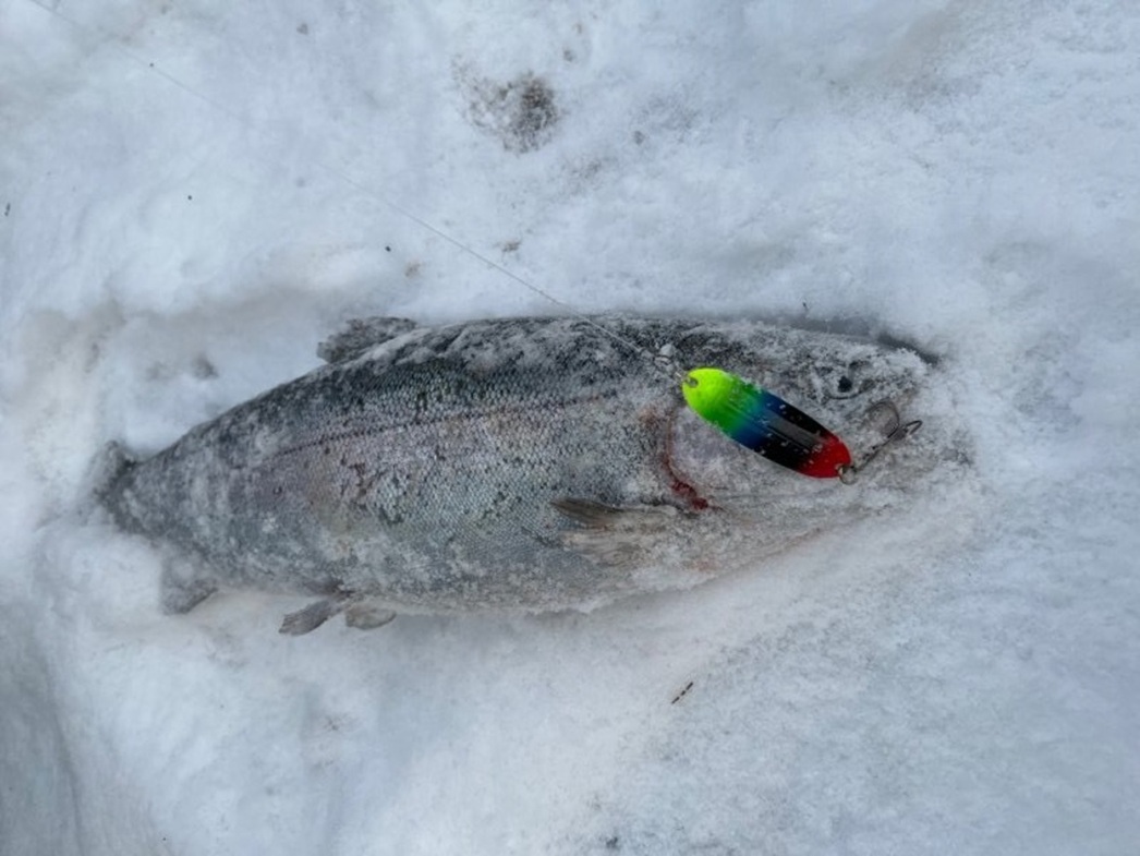 С помощью камеры рыболов может заглянуть под воду и лед и обнаружить отсутствие там объектов ловли. Начнет возмущаться, создаст ненужный шум в интернете и испортит таким образом всю «бизнес-схему». К тому же оказалось, что по мнению владельца пруда, в нем уже плавает столько форели, что дополнительные запуски не требуются — лови-обловись. Но мне это не особо удалось: всего пара небольших (до килограмма весом) рыбок среагировали на блесны. И, надо сказать, в тот день я был невероятно удачлив: трое коллег из семи присутствовавших на водоеме ушли вообще без улова. Возможно, потому, что ни один из них не приехал на Subaru Outback. Но это не точно.