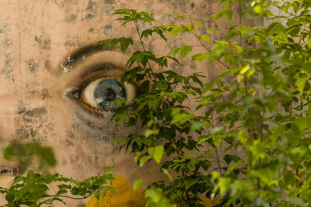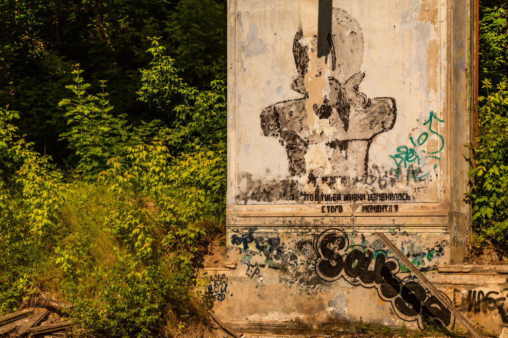 На ней располагается самая, возможно, известная инсталляция из всей нижегородской коллекции — работа Никиты Nomerz «Большой брат». Родному городу — лучшее, так что прогулку по арт-пространству стоит открывать именно с работы местного мастера. «Большой брат» — давняя история, которая постепенно начинает осыпаться, уходя от нас силами времени и строителей, затеявших в этих местах могучую реновацию. Впрочем, даже через забор разглядеть знаменитую башню еще можно. Через тропинку — еще несколько работ Никиты Nomerz, а так же Елены Лисицы и Александра Stan.