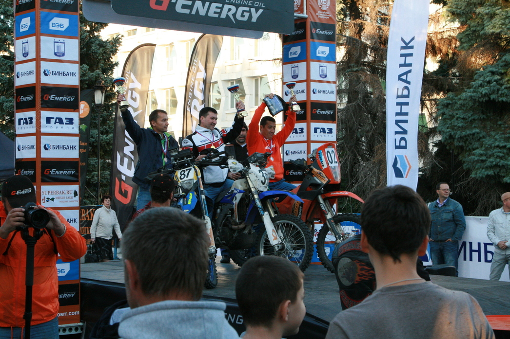 Тем временем, на торжественное открытие гонки прибыл президент «Группы ГАЗ» Вадим Сорокин. Мало того, въехал на подиум на гоночном болиде Соболь 4х4 женского экипажа команды, взяв себе в качестве «штурмана» губернатора Ульяновской области. По его словам, команда наглядно доказала, что отечественная техника может творить чудеса на гоночной трассе. Тем более, что главная фишка «ГАЗ Рейд Спорта» – максимум штатных узлов и агрегатов. В подтверждение президентских слов экипаж Александра Кострукова и Евгения Павлова на «Газель NEXT» взял «золото» в самой представительской категории «рейд-спорт». Можно сказать, что парни в общей сложности уже третий год удерживают лидерство в зачете, а по результатам этого года стали абсолютными чемпионами. Конкурентов у них нет. А «бронза» досталась экипажу Александра Семенова и Рамиля Замалетдинова на дакаровском прототипе Т1. Самое интересное, что у парней главной целью были не призовые места, а окончательная доработка прототипа, который команда собирается выставить на Дакар. Но спортивный азарт взял свое! Подробнее про сенсационный аппарат мы расскажем чуть позже. Пока же стоит добавить, что команда заняла третье место в командном зачете, окончательно укрепившись на верхушке рейтинга.