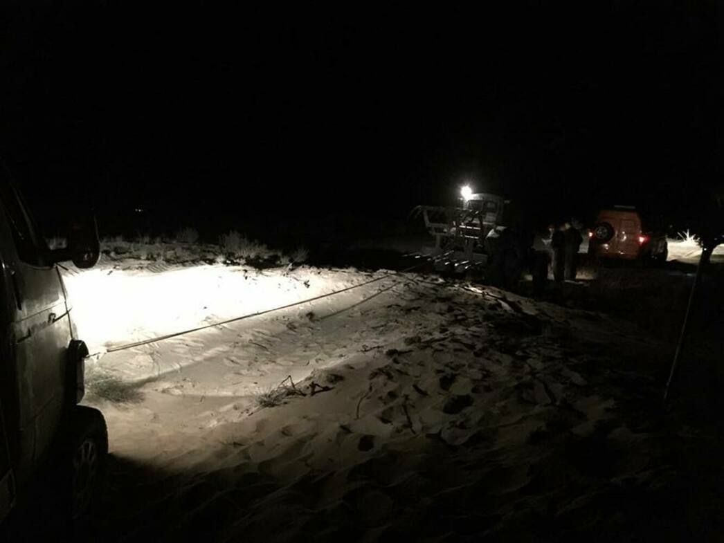 И вот из темноты показалось чудовище, сверкающее единственным глазом и утробно урчащее. Это прибыл на выручку и одновременно подкалымить трактор МТЗ-50. Эх, зря мы доверились вылезшему из него аборигену. Тот заявил, что в сторону асфальта мы не проедем, слишком коварные пески, и лучше тащить поверженный болид в другую сторону, к его родной деревне. Дескать, по пескам придется пройти чуть больше километра, а далее начинается нормальная грунтовка. Как же... Наши перемещения в пространстве выглядели следующим образом: мы откапываем недвижимые передние колеса, трактор делает рывок и приподнимается на дыбы, вскидывая к звездному небу маленькие передние колесики. Мы продвигаемся на несколько метров и вновь беремся за лопаты. Так продолжается почти полкилометра, когда на суфийского ученика Марину нисходит главное откровение: «Я поняла, на ралли-рейдах главное – лопата!». До остальных участников доходит другая истина – абориген заблудился в родных песках и мы копаем совсем не в ту сторону. Точнее, накручиваем круги между барханами. И вот настал момент, когда пришло главное откровение это ночи: оставить гоночный аппарат, вынув из него все ценное, и ехать на базу. Завтра его заберет более серьезная техника.
