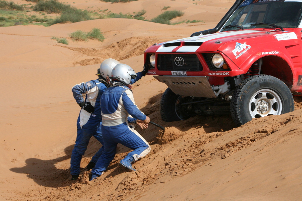 Автор трассы Сергей Таланцев приготовил гонщикам более чем интересные «сюрпризы»: грязевые «ванны» среди коварных ухабов и рытвин жесткой степи. В результате треть экипажей сошли с дистанции.