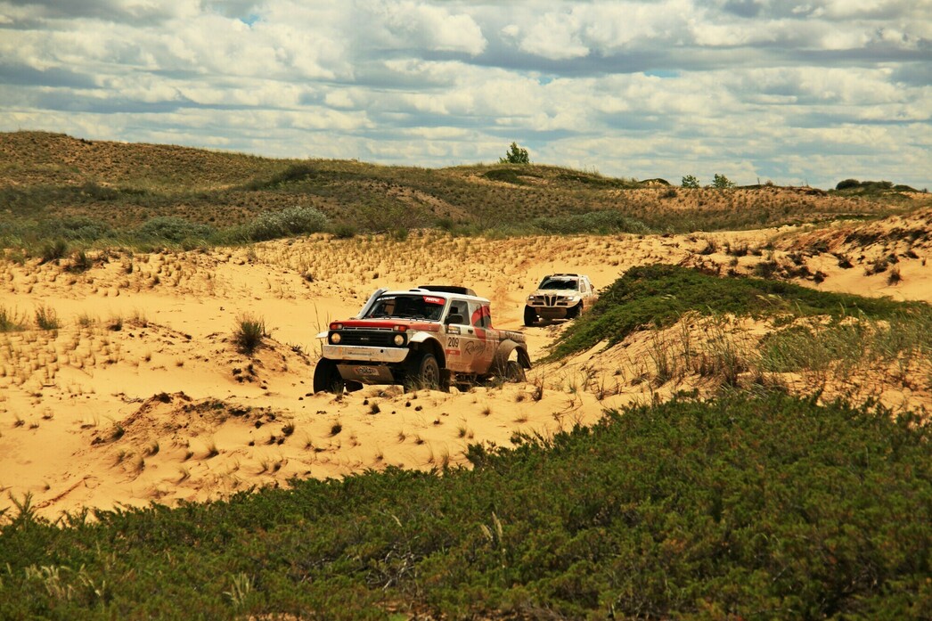 Степь сменилась сначала лесополосой, в которой имелось болото, ставшее местом отдыха Бориса Гадасина, вытащить которого смог только гоночный КамАЗ, а потом пришел черед главного волгоградского «Диснейленда» — Арчединской песочницы. Проехать это препятствие без потерь могут лишь очень опытные или очень везучие пилоты. Несмотря на проливные дожди и кажущуюся плотность, участники пелотона мгновенно закапывались, даже несмотря на стравленные до половины атмосферы покрышки BF Goodrich.