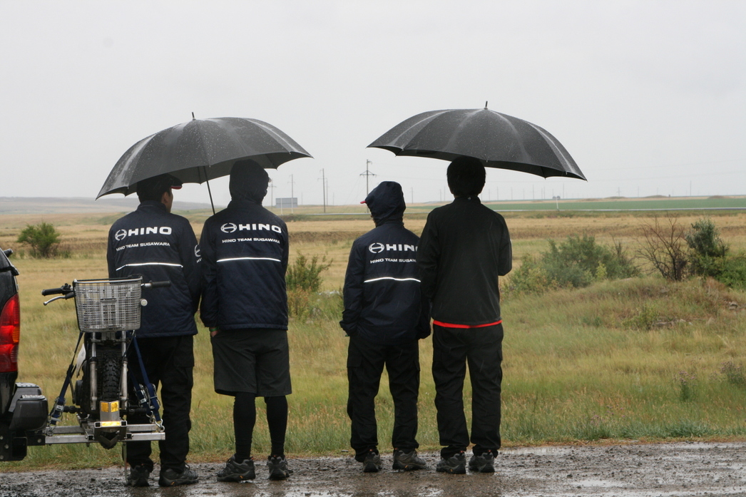 А вот второй казахский день оказался настоящим испытанием не только для спортсменов. Он проходил по самым безлюдным местам от Астаны до Семея — бывшего ядерного полигона Семипалатинска. И это был настоящий ад. То, что называется казахская федеральная трасса, представляет собой более 700 км колдобин из разбитого асфальта и жесткого гравий. Многие предпочли перемещаться по параллельной «официальной» дороге грунтовке — там гораздо мягче. На брифинге в конце дня руководитель гонки Владимир Чагин заявил, что на этом участке стоит поблагодарить всех: и спортсменов, и всех остальных водителей. Можно с уверенностью сказать, что пока это был самый тяжелый день за всю гонку.