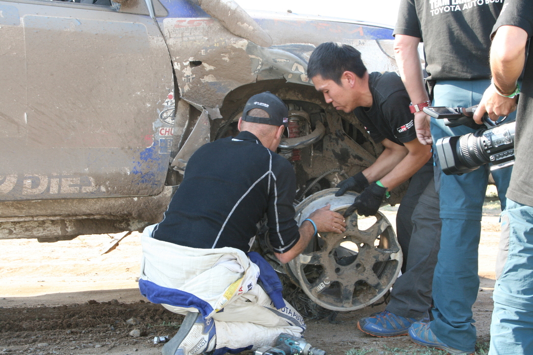 Не буду описывать местные пейзажи, сразу перейду к потерям в пелотоне гонки. Начну с самого простого: даже машины организаторов ралли не все вернулись в лагерь — одна «сделала уши». Теперь о великих. Начнем с лидеров — команды Peugeot. Стефан Петрансель перевернулся, влетев в яму на огромной скорости. Продолжить гонку он смог лишь после того, как его вытащил экипаж «камазовцев» Айрата Мардеева. Мало того, по сообщению пресс-службы марафона, помог реанимировать автомобиль, с использованием запчастей, находившихся на борту большегруза. Сириль Депре улетел в кювет, но выбрался с помощью другого «камазовского» экипажа — Дмитрия Сотникова. А вот Себастьян Леб отработал за всю команду — сберег аппарат, держал лидерство на двух спецучастках, на которые был разделен гоночный день и одержал победу на этапе. В результате он опережает Депре на час.