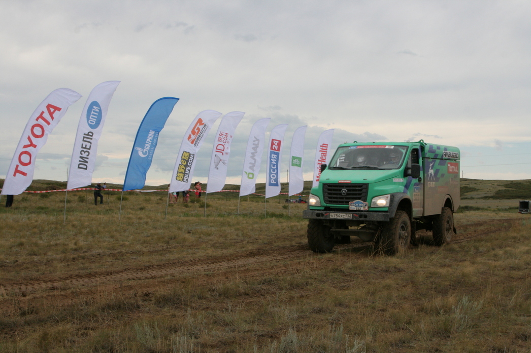 Если же говорить о последнем спецучастке на территории Казахстана, то он проходил вдоль знаменитой Туркестано-Сибирской магистрали, построенной в конце 20-х годов прошлого века. Это была жесткая степь со множеством коварных ловушек. Увы, но обильные осадки преследуют караван гонки от самой Москвы. А в середине дня пошел не просто проливной дождь, а непривычный для степных просторов тропический ливень. Около часа вода лилась с небес сплошным потоком. Боевые «Газели» команды «ГАЗ Рейд Спорт», в которой выступает' и портал «АвтоВзгляд», как и в предыдущий день шли по гоночной трассе «караваном» одна за другой. На это жаловались фотографы и операторы, но парни уже вошли в тяжелейший ритм и подошли к китайской границе без потерь. Но такие катаклизмы в их планы не входили: