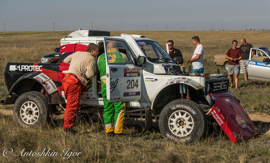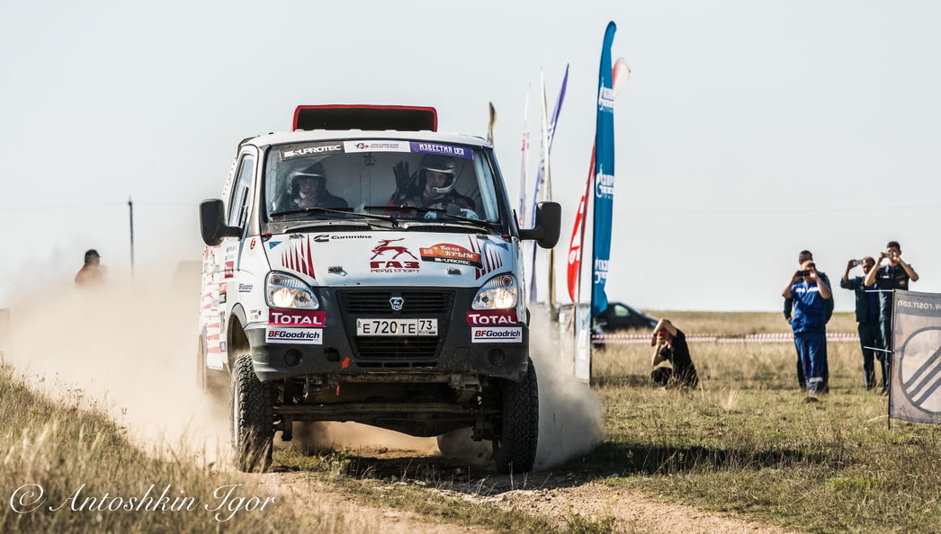 Несмотря на сентябрь, крымское солнце палит нещадно. В спортивных машинах нет кондиционеров, живительный воздух поступает лишь через маленькие форточки. Приехав на промежуточный финиш, пилоты и штурманы срывали шлемы и с наслаждением лили на голову воду. Но перерыв совсем недолог, впереди еще 162 км пыльных дорог, спусков и