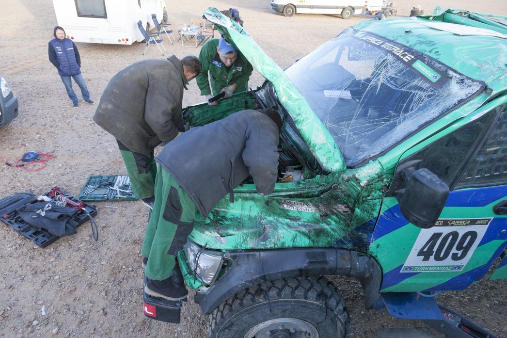 «Газон» Шкляева и Лагуты команды «ГАЗ Рейд Спорт» под номером 409 в ходе этапа четвертого дня «встал на уши». Машина получила серьезные повреждения, но после того, как удалось опереться на землю всеми четырьмя колесами, автомобиль кое-как доковылял до бивуака.