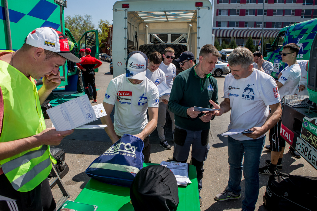 Мощную команду представил «КАМАЗ-Мастер» — аж семь автомобилей! Для этой команды чемпионат России становится и соревнованием, и тренировкой в боевых условиях. Именно по этой причине в Астрахань из Набережных Челнов приехало так много машин. Причем 7 боевых автомобилей с экипажами их трех человек — лишь верхушка айсберга. На каждую из них приходится примерно по шесть механиков, еще есть машины, везущие технический персонал и запчасти, руководство и т. д. Поэтому создается впечатление, что в гостинице, приютившей участников «Золото Кагана», каждый второй в камазовской одежке — в бело-голубых футболках и кепках.