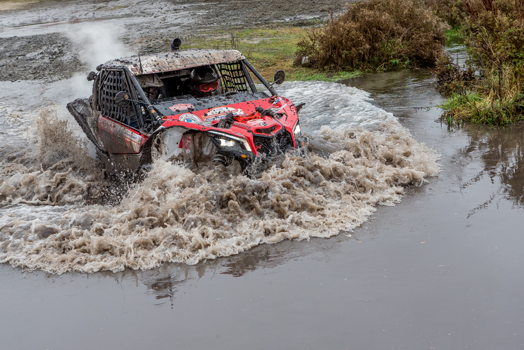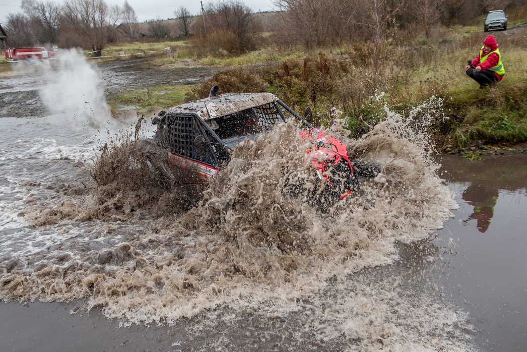 Вот и влетают экипажи в такие озерца на полном ходу. И не известно кому хуже — тем, кто управляет открытым багги, либо сидящим в закрытой кабине. Первые с ног до головы облиты тягучей грязью, на финише их кое-как отмывают из автомоек. У вторых после каждого омовения кабина превращается в минипарилку — вода попадает на раскаленный двигатель и затем уже пар через воздуховоды просачивается в кабину.