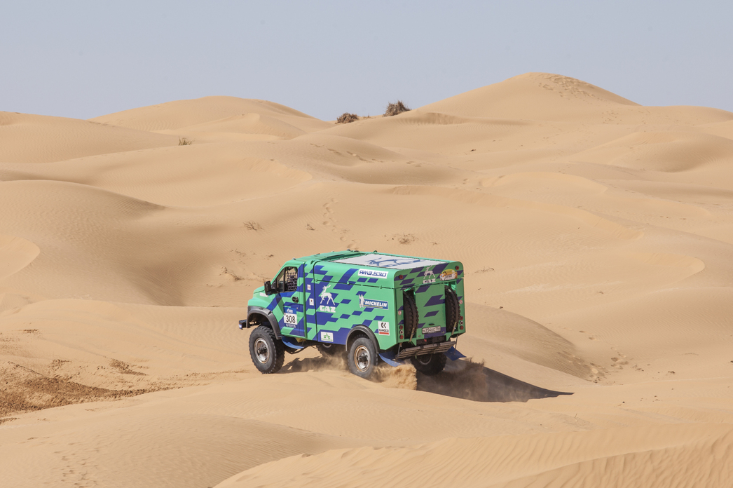 Пески прошли хорошо, на одной скорости со спортивными КАМАЗами. На кочкарнике и на грунтовке от них отстаем — другие габариты, мощность двигателя отличается в три раза. Все же наш ГАЗ «Садко» — обычный серийный автомобиль, немного доработанный. А там — специально созданный грузовой гоночный болид. Результатом доволен — мы на 16-й позиции в общем зачете из 60 участников.