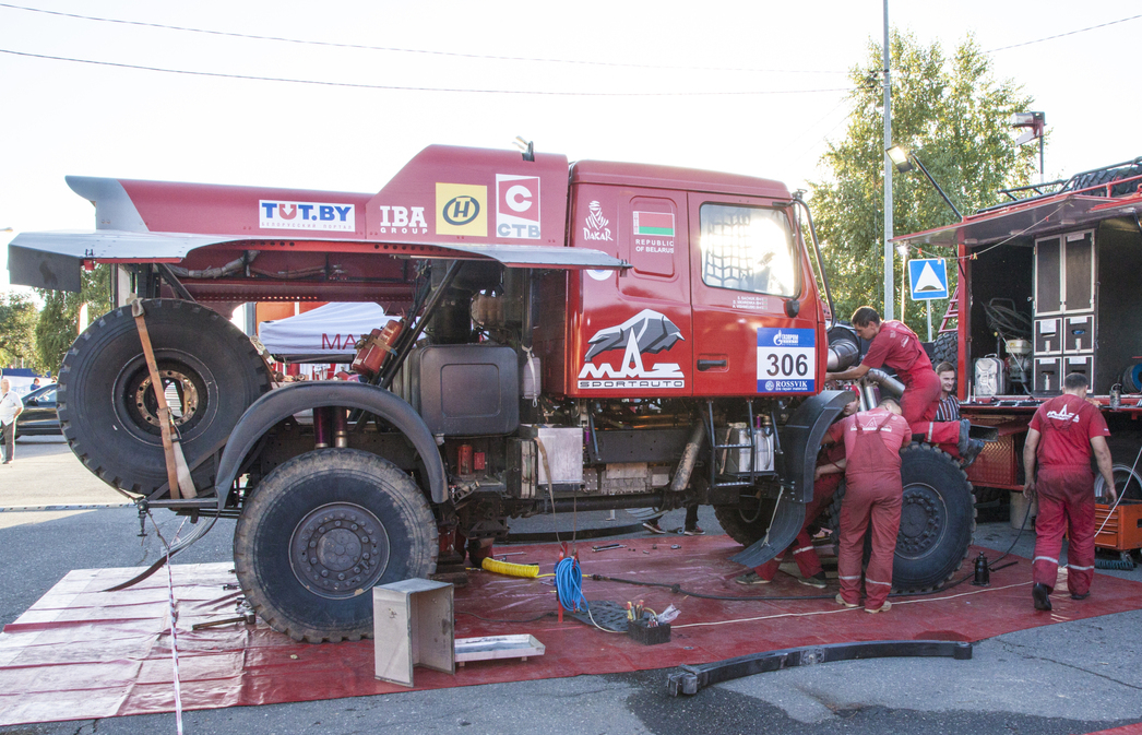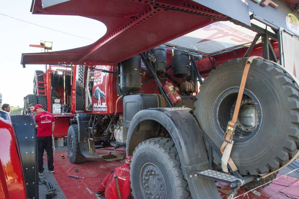 Хотя для здешних песков 45 минут — не такая уж большая потеря. Капотный МАЗ под номером 306 завалился на бок, а поднять такую махину в вязком песке не так уж просто. Но все же удалось: вечером минские механики уже колдовали над машиной. Даже неубиваемые спортивные КАМАЗы ломаются — местные пески доконали многих.