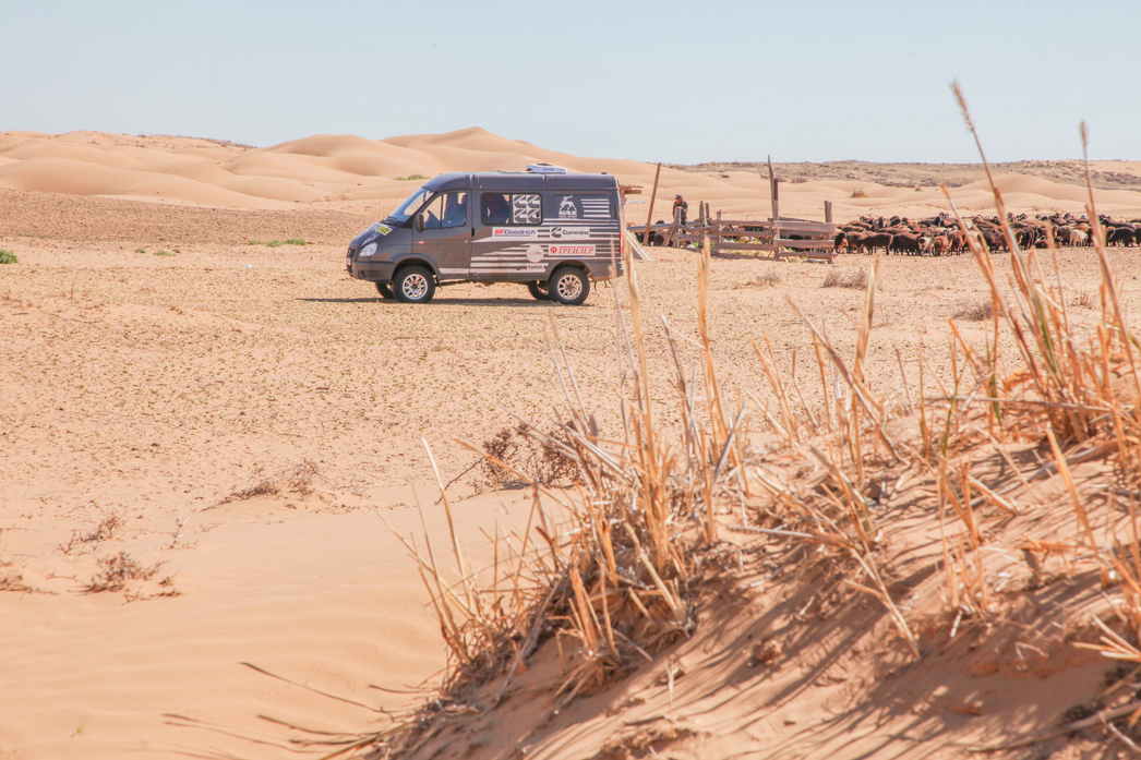 С этими гигантскими песочницами играется природа. Сдувает песок в степь, Большой брат уменьшается в размерах в два-три раза. На следующий год настрой природы меняется. Она полной ложкой насыпает тысячи кубометров мелкого, дисперсного песка, барханы разрастаются ввысь и вширь. По таким пескам корреспондент «АвтоВзгляда» передвигался на обычном полноприводном ГАЗ «Соболь». Барханы, конечно, не форсировали, но смогли оставить позади практически всех. Проходимость — исключительная.