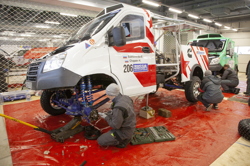 Проблем было много. Вскоре после старта вылетел с трассы Денис Кротов. Он завис на бруствере, пришлось его вытаскивать. На помощь пришел экипаж команды «ГАЗ Рейд Спорт» — Алексей Игнатов и Евгений Павлов. Впрочем, у Дениса Кротова проблемы продолжались — он оторвал колесо. Полетела коробка передач у багги Юрий Аршанский — похоже, он выбыл из гонки. Не смог тронуться Андрей Сушенцов — видимо, вместо зимнего дизельного топлива на АЗС им залили летнее. Развалилась трансмиссия у Серджио Галетти.