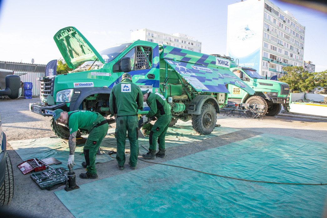 Действительно, первый день пристрелочный. Начинается двухдневный марафон. После 279-километрового пробега экипажи самостоятельно будут обслуживать машины. Ночевка на бивуаке в Кендерли на Каспийском море. И вряд ли всем удастся выспаться…