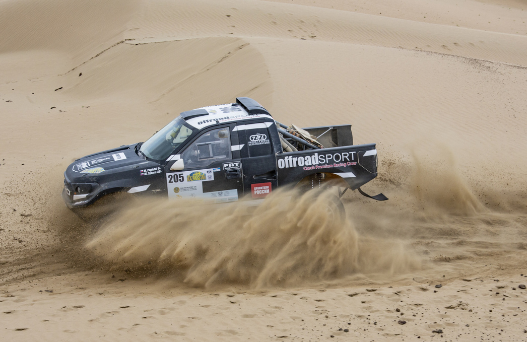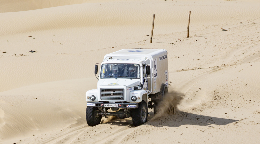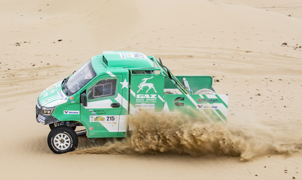 —День оказался тяжелым, рассказывает пилот команды «ГАЗ Рейд Спорт» Алексей Игнатов. — Особенно сложно было пройти пески. Непростой рельеф дюн не позволял штурмовать их в лоб. Приходилось все время маневрировать и выискивать новый маршрут. Ехать по следам опасно: машины разрыхляют песок и там, где до этого легко проходили другие экипажи, последующие вязли…