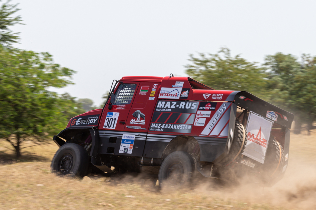 Продолжаются проблемы у команды «МАЗ-СПОРТавто». Алексей Вишневский остановился уже через 10 км после старта — «полетела» турбина. На ее замену ушло два часа. У Вязовича продолжаются приключения с колесами. На маршруте он пробил два колеса и, оставшись без запаски за 50 км от финиша, ехал максимально аккуратно. В результате он пятый среди грузовиков. Впереди «КАМАЗ Мастер».