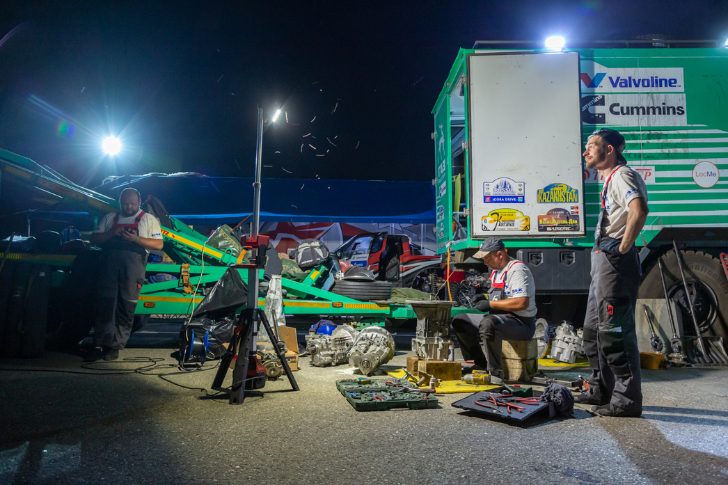 Механики готовят машины. Сегодня подготовка особенно тщательная: следующий день — марафонский. Помощь механиков запрещена. Экипажи будут рассчитывать только на себя: на свои силы, запчасти, умение и собственные руки.
