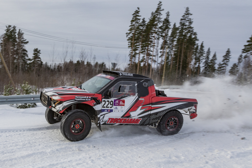 В большинстве своем нынешняя трасса — узкая дорога, расчищенная в снегу. А потому в явном преимуществе оказались багги — юркие и компактные машины с гигантскими ходами подвески чувствовали себя в этих условиях как рыба в воде. Владимир Васильев уже не претендовал на победу и за первенство в абсолюте вели борьбу экипаж