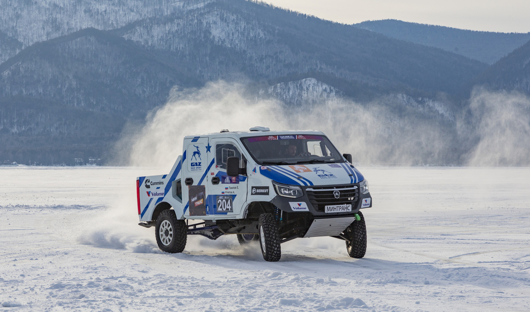 – На «Байкальской миле» мы впервые показали «Валдай 4х4», — рассказал руководитель спортивного отделения Горьковского автозавода Михаил Шкляев. — Эта машина — сборная конструкция, в которой ГАЗ использует оптимальные решения всего модельного ряда. Так, рама, передний мост и передняя рессорная подвеска взяты у полноприводной «Газели». Задний мост вместе с пневматической подвеской — от «Газель City». На мостах установили проставки под 19,5-дюймовые колеса. Двигатель — ЯМЗ−534 (310 л. с. и 1080 Нм) от спортивного «Садко». В паре с ним используется коробка передач от ПАЗа. Сам мотор не под кабиной, а смещен к центру машины для лучшей развесовки.
