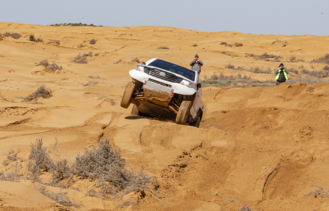 Первый день — 20-километровый пролог, определяющий старт следующего дня соревнований. Самые быстрые едут впереди, тихоходы им не мешают. В Астрахань прибыли лучшие спортсмены страны: 43 экипажа на автомобилях и 10 человек на мотоциклах и квадроциклах.