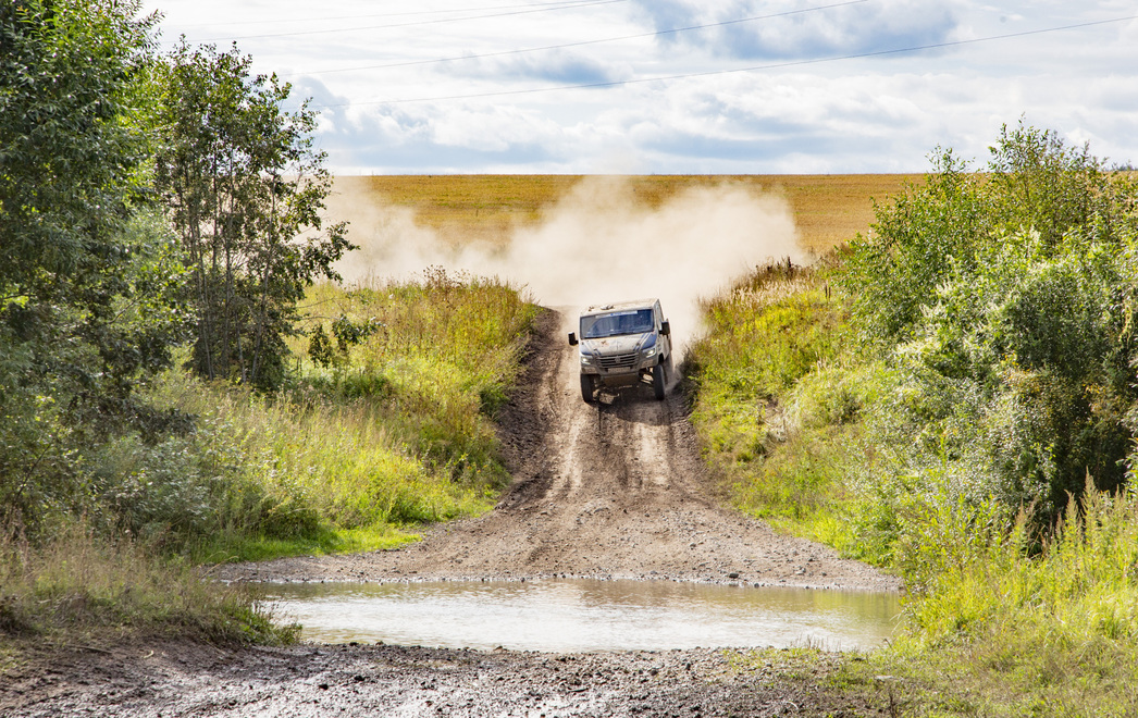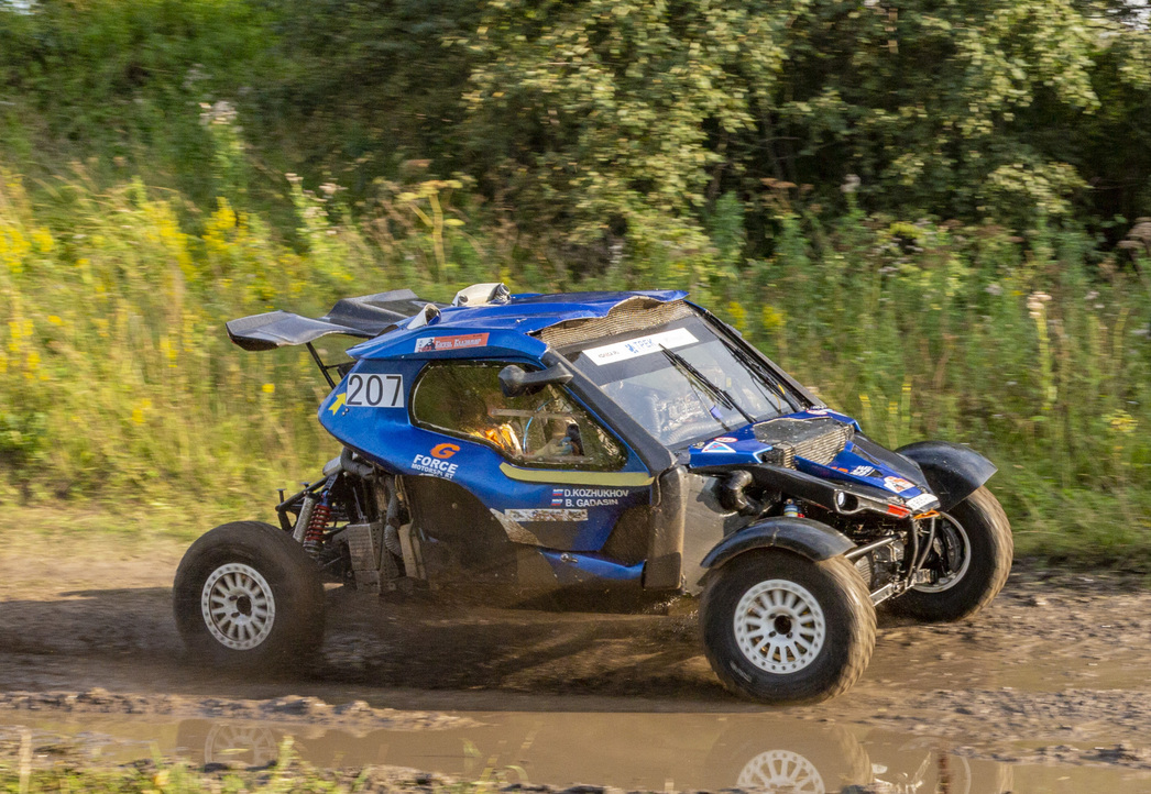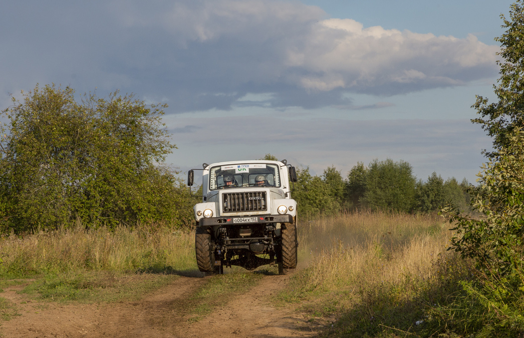 – Быстрые, техничные дорожки, — сговорит Владимир Васильев. — В основном, все движение идет вдоль полей. Было два брода, которые мы решили пройти ходом, и в первом нас немного даже выставило на скорости. В целом, отличные интересные дороги, но даже несмотря на то, что спецучасток был довольно коротким, механикам придется отмывать машину — чернозема мы привезли много…
