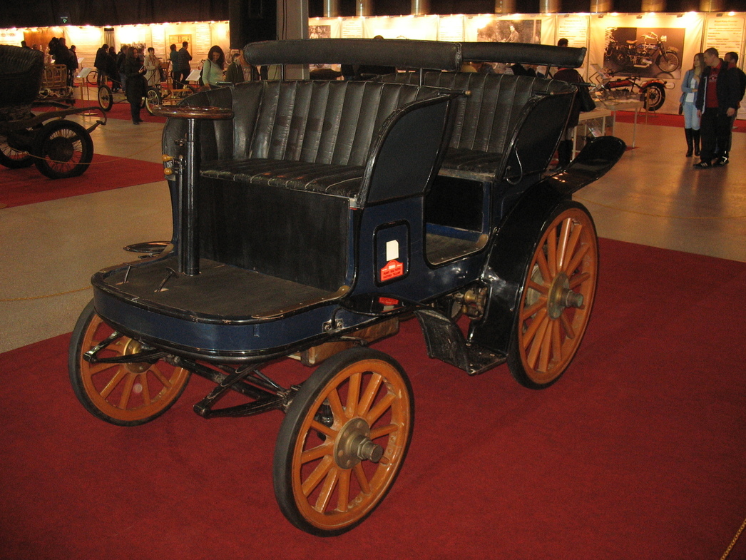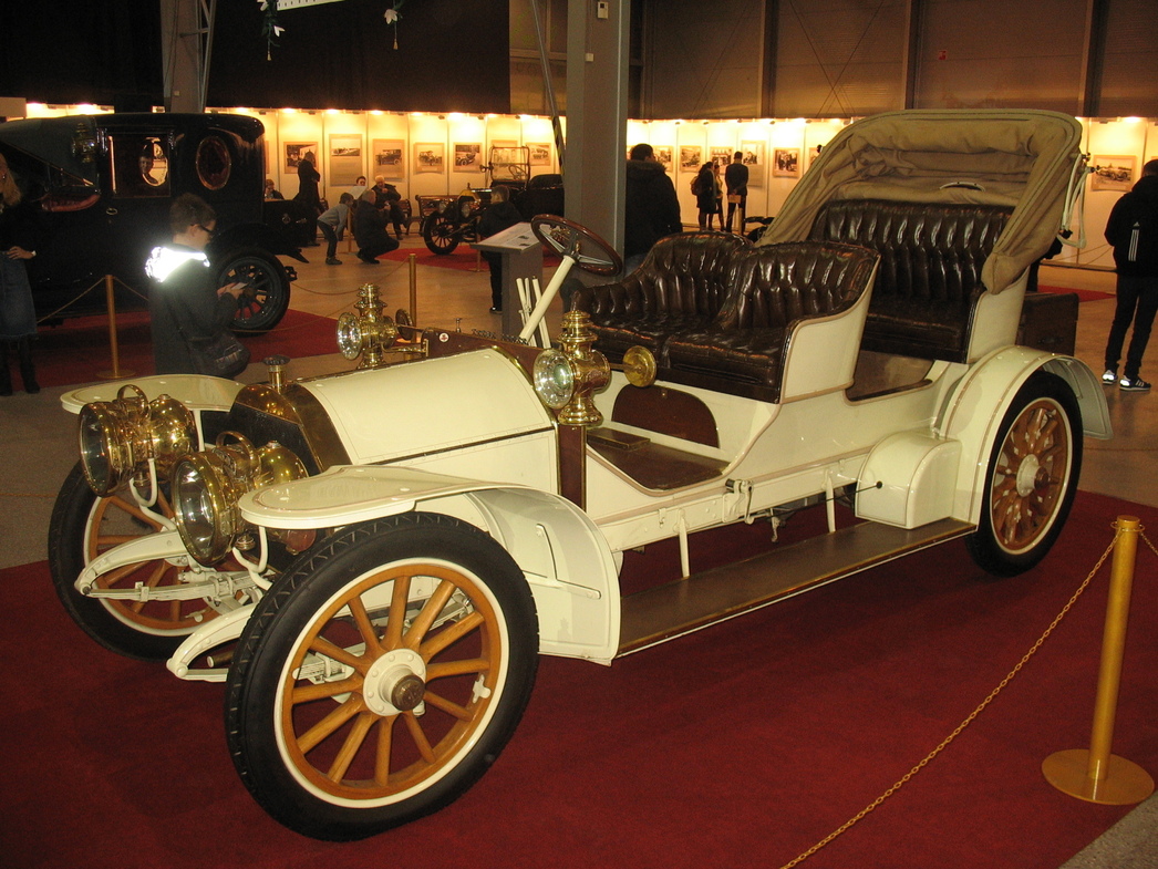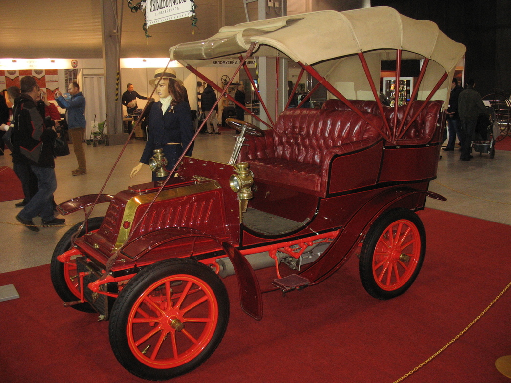 На нынешней выставке демонстрируется De Dion-Bouton Model Z. Такие автомобили, снабженные одноцилиндровым двигателем мощностью 8 л.с. начали выпускать с 1903 года. Они имели уже классическую компоновку с двигателем, расположенным впереди под капотом. А вот с точки зрения пассажиров, «классики» никакой еще не было: людям приходилось попадать в автомобиль через дверцу в задней стенке кузова.