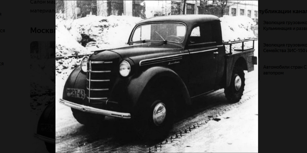 Так, например, в 1947 году появился опытный образец пикапа. Как полагали его создатели, машина была бы крайне полезна в сельской местности, в перевозке мебели и других грузов. Но до серии дело не дошло. Этот пикап лишь стал основой для создания аэродромного пускового агрегата АПА−7. Пикапы же стали делать на сторонних авторемонтных заводах, переделывая отслужившие свое машины или те, что побывали в аварии.