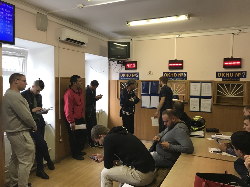 В 08.15 корреспондент портала «АвтоВзгляд» вошел в МОТОТРЭР №5, оказавшись пятнадцатым человеком в очереди к терминалу, и получил талон на 13.10. День был разбит. Журналист, конечно, съездил на работу, чтобы помелькать перед начальством и по-быстрому справиться с мелкими рабочими вопросами. Но толком ничем заняться, разумеется, не успел. Отсюда вопрос — почему (особенно учитывая вышеизложенный хронометраж работы инспекторов) гражданам нельзя двигаться по описанной цепочке друг за другом? Пока первый проходит осмотр машины, второй — оформляет заявление, и так — в режиме конвейера. Разумеется, какие-то накладки возникать непременно будут, но по любому на все про все уйдет гораздо меньше времени. Особенно если заявления заполнять станет не одна барышня, а осматривать машины не один инспектор.