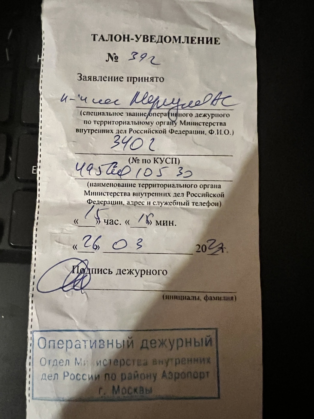 Но сразу замечу, что многочисленные интернет-советчики, рекомендующие в подобных ситуациях первым делом обращаться к участковому, давно отстали от реальной жизни. Современный Анискин и говорить с вами не будет, пока не получит соответствующую указивку от начальства. Поэтому сначала потребуется дотопать до ОВД и подать заявление. И здесь попавшего в неприятность гражданина России — в розыске не числящегося, под судом и следствием не состоявшего, задолженностей по штрафам и коммунальным платежам не имеющего — ждет первое суровое испытание.