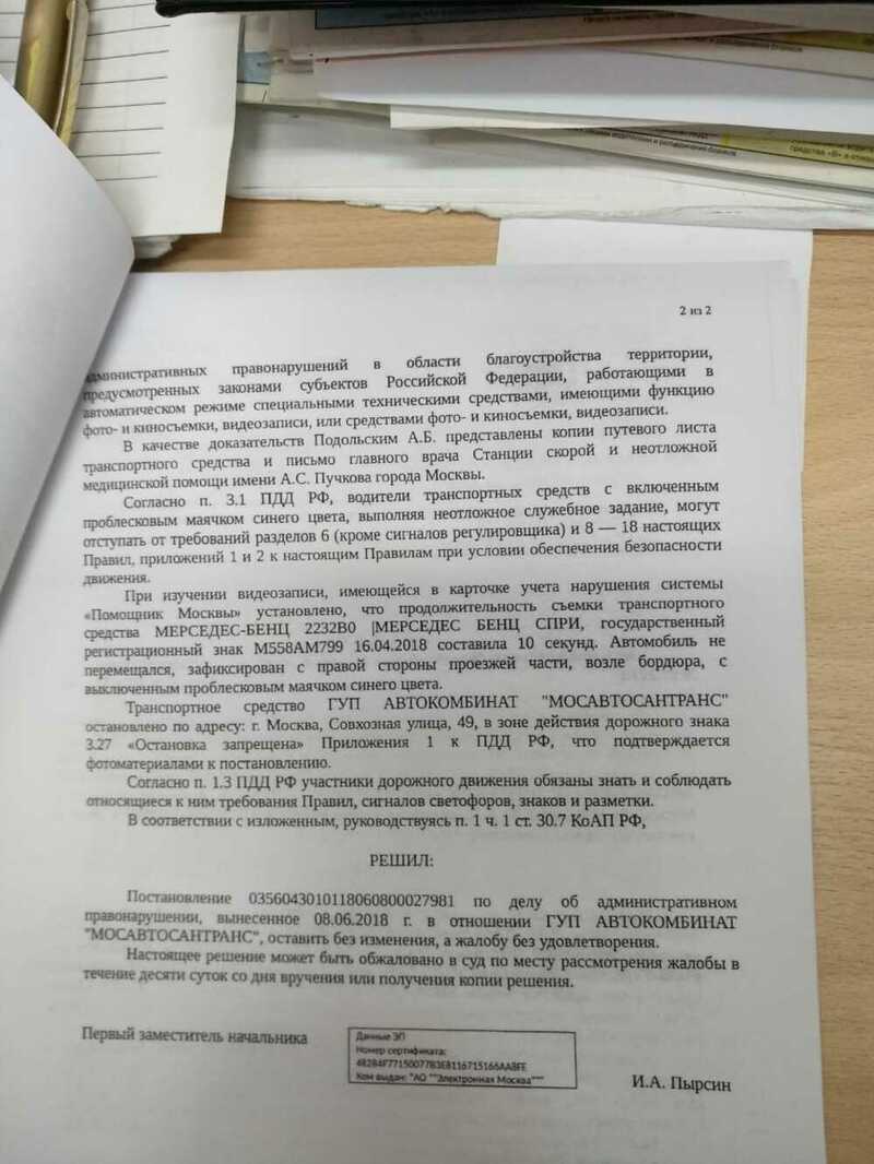 В качестве средства фиксации нарушения в постановлении был указан пресловутый «комплекс ПАК ПМ» — печально известный «Помощник Москвы». Это значит, что какой-то дико правильный гражданин не поленился, и зафиксировал нарушение правил парковки машиной экстренной службы, прибывшей на вызов!