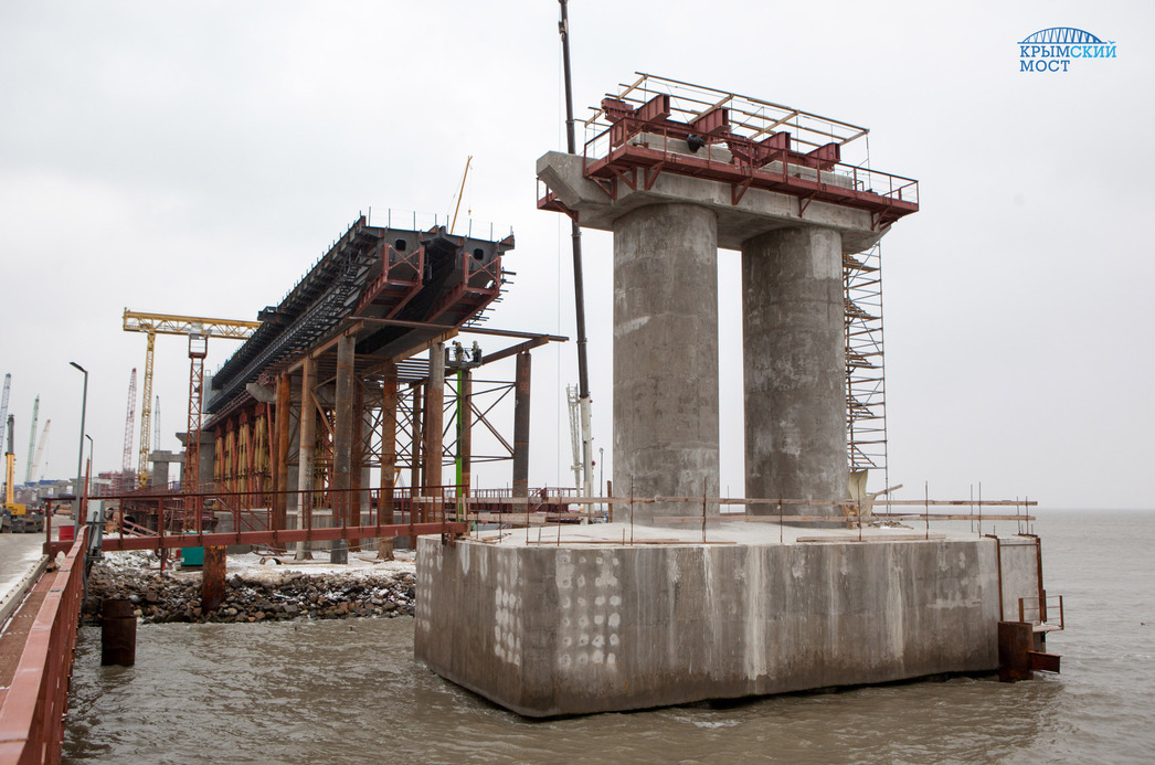 – Каждая последующая опора примерно на полметра выше предыдущей. Железнодорожный мост плавно «растет»: с 5 метров он начинает подниматься на острове Тузла всё выше и выше, так что к морскому участку высота опор достигает почти 17 метров, и дальше — 35 метров над фарватером Керчь-Еникальского канала. Такой плавный подъем обеспечит комфортный и безопасный заход пассажирских и грузовых составов на арочный пролет, под которым свободно проходят суда, — рассказал начальник технической службы «СГМ-Мост» Юрий Бесков.