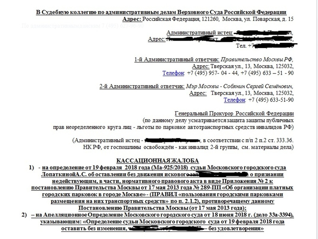 Да только и это не помогло «потерпевшему» добиться справедливости. Причем ни в суде первой инстанции, ни в вышестоящих. Сейчас без вины виноватый водитель дошел до Верховного суда РФ, и в качестве ответчиков привлекает не только организаторов парковочного пространства, но и лично мэра столицы Сергея Собянина. Ведь именно он подписал то самое Постановлению 289-ПП «Об организации платных городских парковок в городе Москве», разрешающее инвалидам бесплатно оставлять свои машины на паркинге.