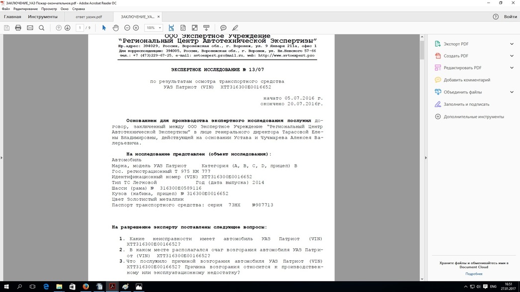 Владелец безвременно погибшего авто заказал независимую экспертизу, пригласив телеграммой к участию в ней представителя дилерского центра «Техинком-Авто», где был куплен злополучный «Патриот». Но сотрудники автосалона сие мероприятие ожидаемо проигнорировали.