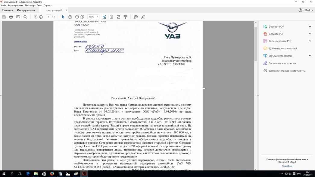 В соответствии с п. 1 ст.21 закона «О защите прав потребителей», обладатель обугленного каркаса марки «УАЗ» отправил дилеру претензию с требованием заменить гарантийный автомобиль на новый, но ответа так и не получил.