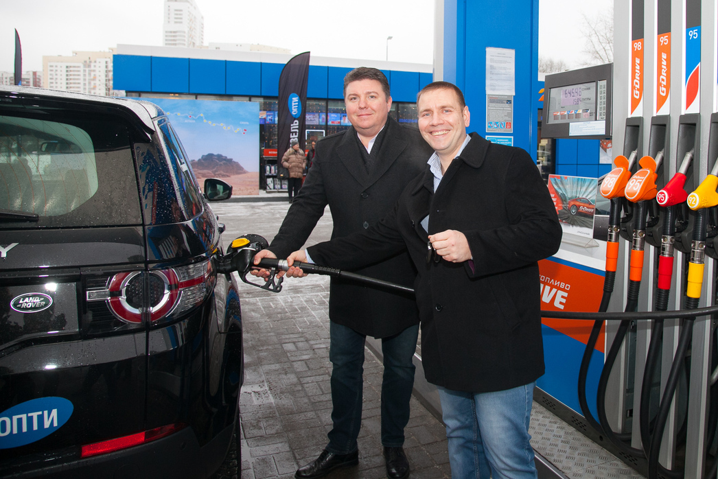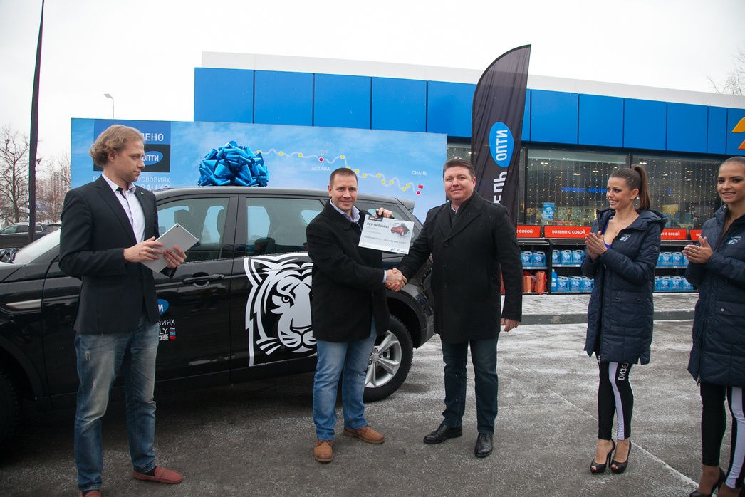 Ключи от нового внедорожника Юрию Остроухову на автозаправочной станции вручил руководитель сети АЗС «Газпромнефть» в Московском регионе Сергей Лусенков.