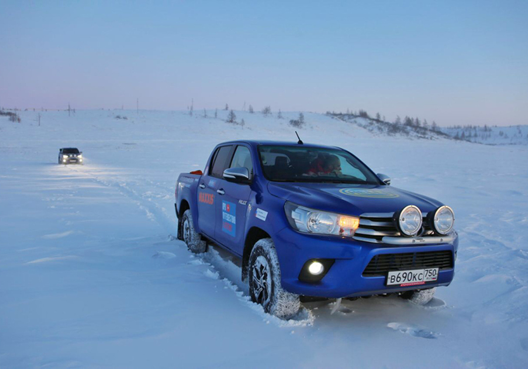 В прошлом году члены итальянского клуба владельцев электромобилей Tesla прославились на весь мир, проехав на седане Model S более 1000 километров без дополнительной подзарядки. Компания BMW «записалась» в Книгу рекордов Гиннесса, накрутив 374 километра на седане M5 в непрерывном контролируемом заносе на трассе в Южной Каролине. Toyota же «поехала» другим, более экстремальным путем. Японцы отправили два пикапа Hilux в самую северную населенную точку России — поселок Диксон.