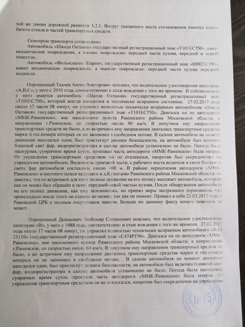 Но на нем внезапно выяснилось, что прокуратура города Раменское еще 17 сентября того же года… отменила постановление, в котором гражданин Ткачев был назван виновником аварии и отправила дело на повторное расследование.