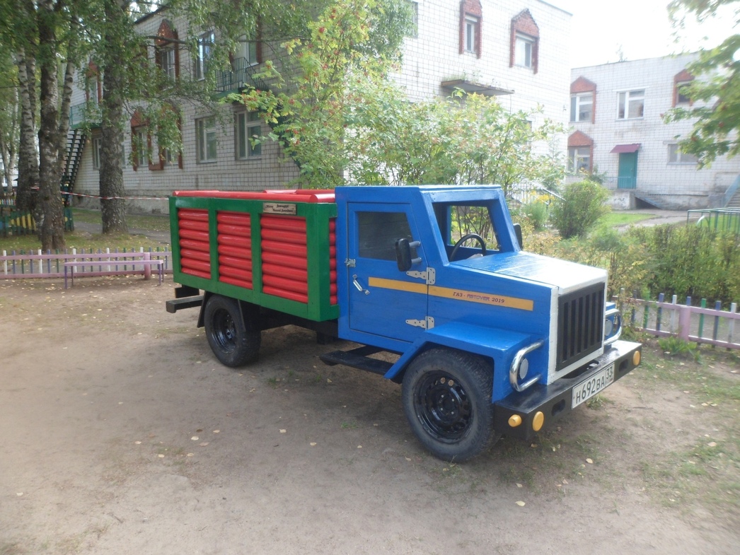 За плечами Василия Лютницкого — уже три максикопии советских грузовиков. Сперва мастер сделал для детей ГАЗ-3307, затем воспроизвел из дерева ЗиЛ-130, а теперь на площадке садика появился трехосный «Урал». Как отмечает автор, на каждую фигуру требуется материала примерно на 50 000 рублей, а весит такой грузовик около тонны.