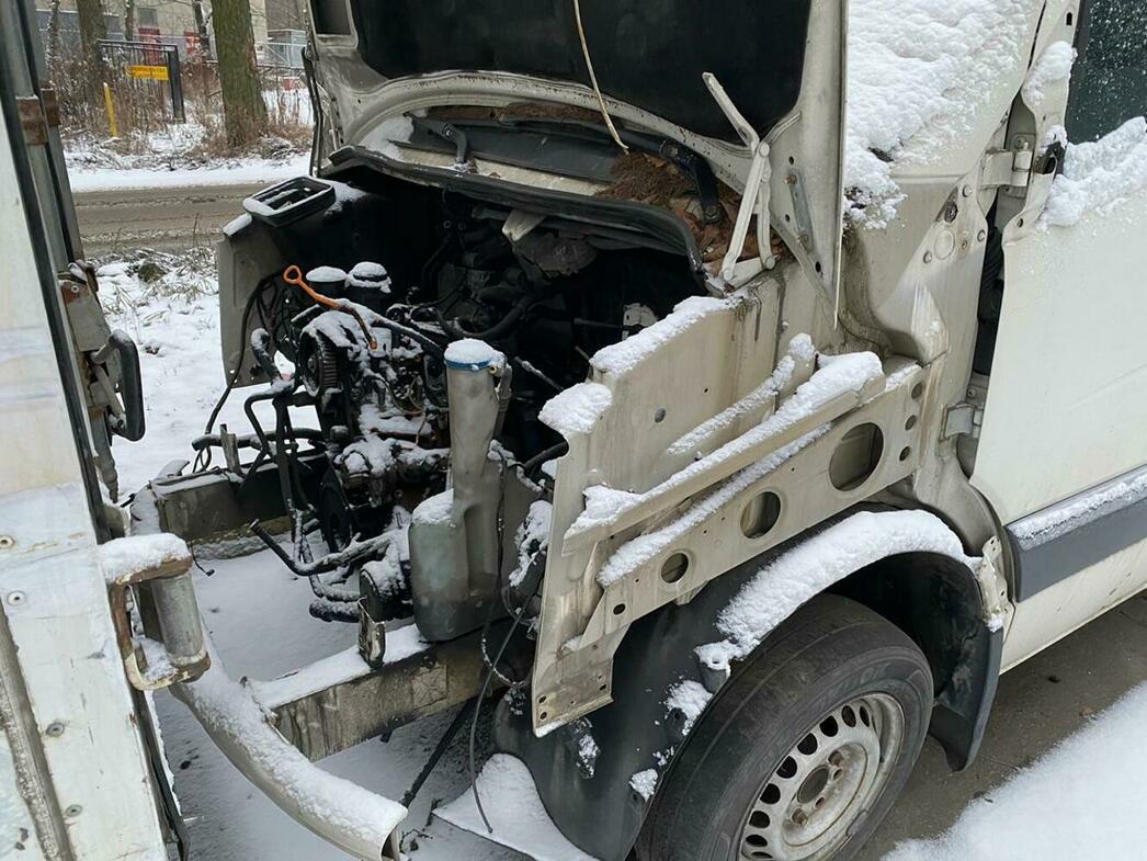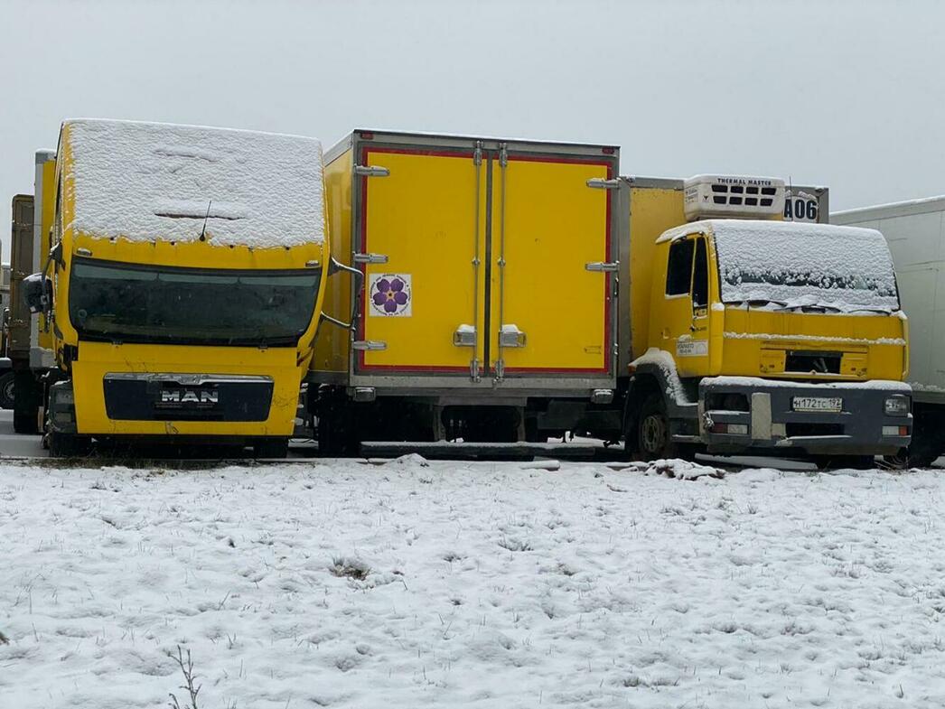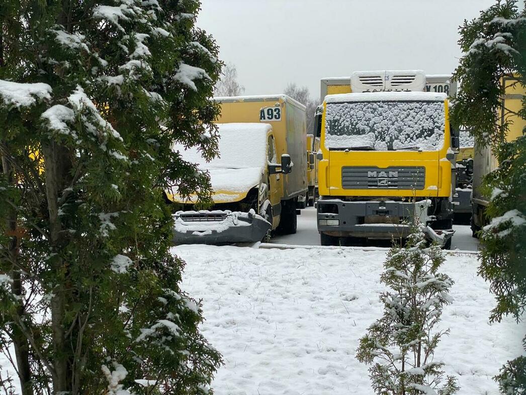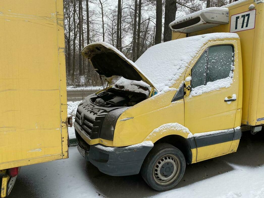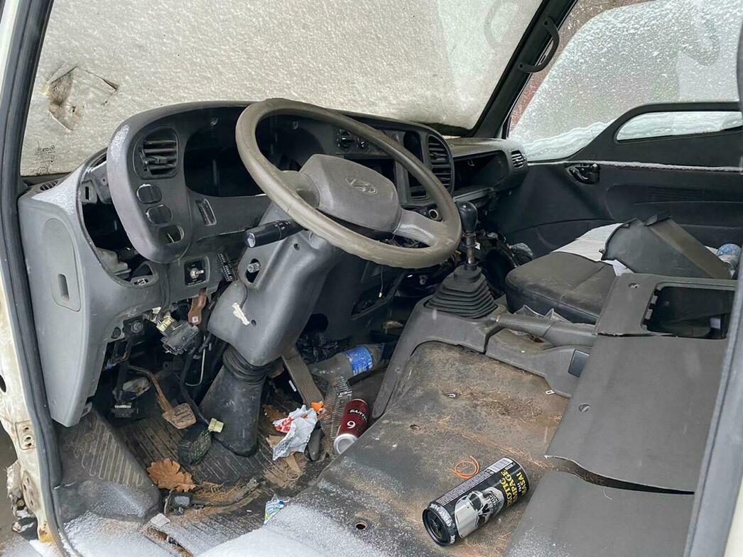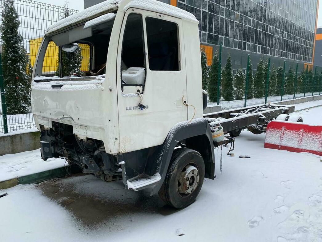 В отстойнике собраны разбитые и уже частично разобранные MAN, Volkswagen Crafter и Caddy, Hyundai Porter, Ford Transit, а также автобус ЛиАЗ.
