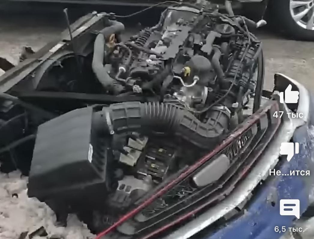 Увы, сегодня может быть все, удивления не вызовет. Но тогда стоит признать, что к этому самому ремонту привело не менее серьезное столкновение, а в таком случае машину чаще всего списывают – это финансово целесообразней, чем восстанавливать. С высокой долей вероятности, авария была тяжелой, машина - исправной, только вот результат поразил всех: моторный отсек разорвало, а мотор вывалился на улицу. В прямом смысле слова.